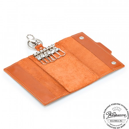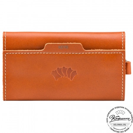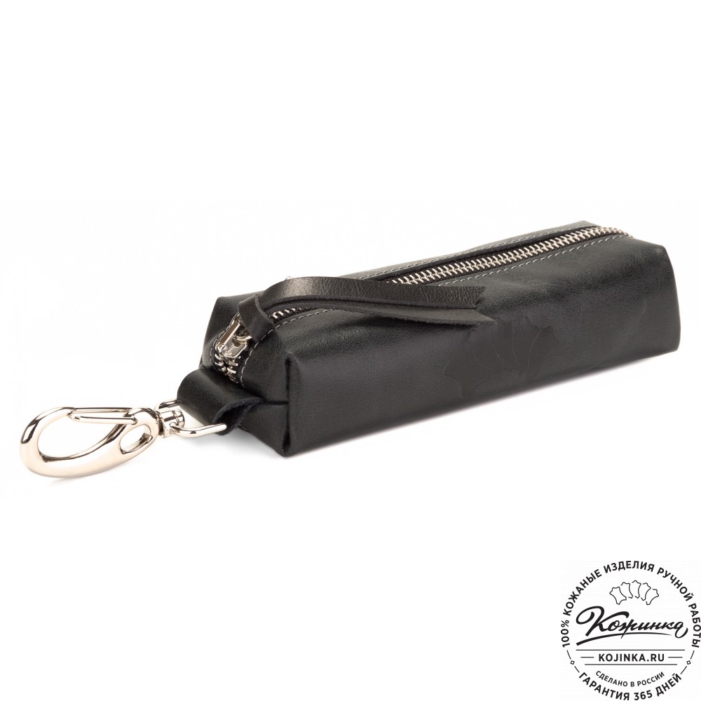 Ключница мягкой конструкции из качественной натуральной кожи закрывается на застежку-молнию и имеет наружный карабин.