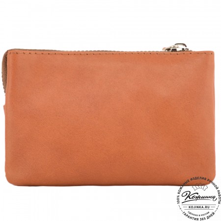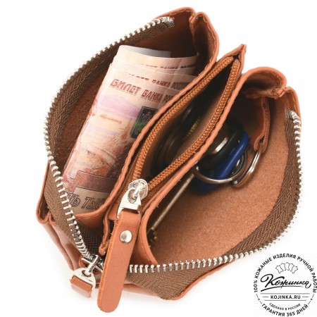 Кожаный кошелек "Солярис" – компактная модель с двумя отделениями для купюр, ключей и небольшим карманом на молнии для хранения мелочи.
