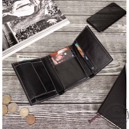 Кожаное портмоне "Лондон" - удобное портмоне с продуманным дизайном, украшено двумя тиснениями на лицевой стенке и декоративной строчкой.