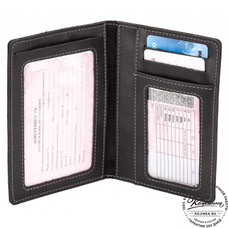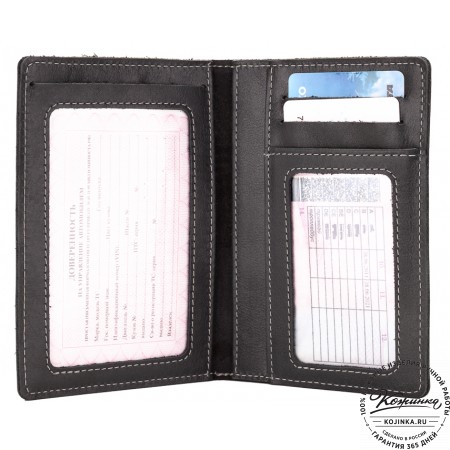В комплект в одном стиле и в одном цвете кожи можно выбрать портмоне, обложку для паспорта, визитницу и прочее.