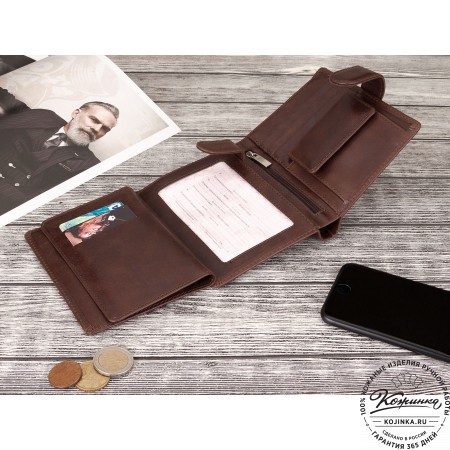 Кожаное портмоне "Рим" - отличный вариант небольшого бумажника с отделениями для карт и для мелочи.