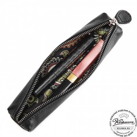 Закрывается ключница на молнию, внутри большое металлическое кольцо для ключей.