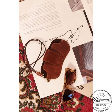 Футляр изготовлен из жёсткой толстой кожи высочайшего качества. Он отлично держит форму и надежно защищает очки от повреждений.