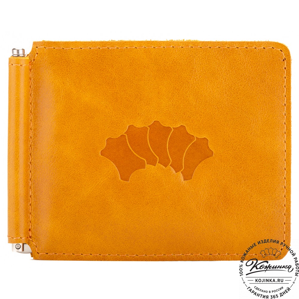 Зажим представляет собой обложку из качественной натуральной кожи для денежных купюр. Купюры удерживаются в обложке с помощью металлического зажима удобной конструкции.