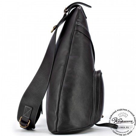 Внутри одно вместительное отделение, открывается молнией с лицевой стороны. Есть небольшой карман на задней стороне - для мелких вещей, документов. Крепкая надёжная настраиваемая конструкция на одно плечо владельца. Сверху крепкая кожаная ручка.