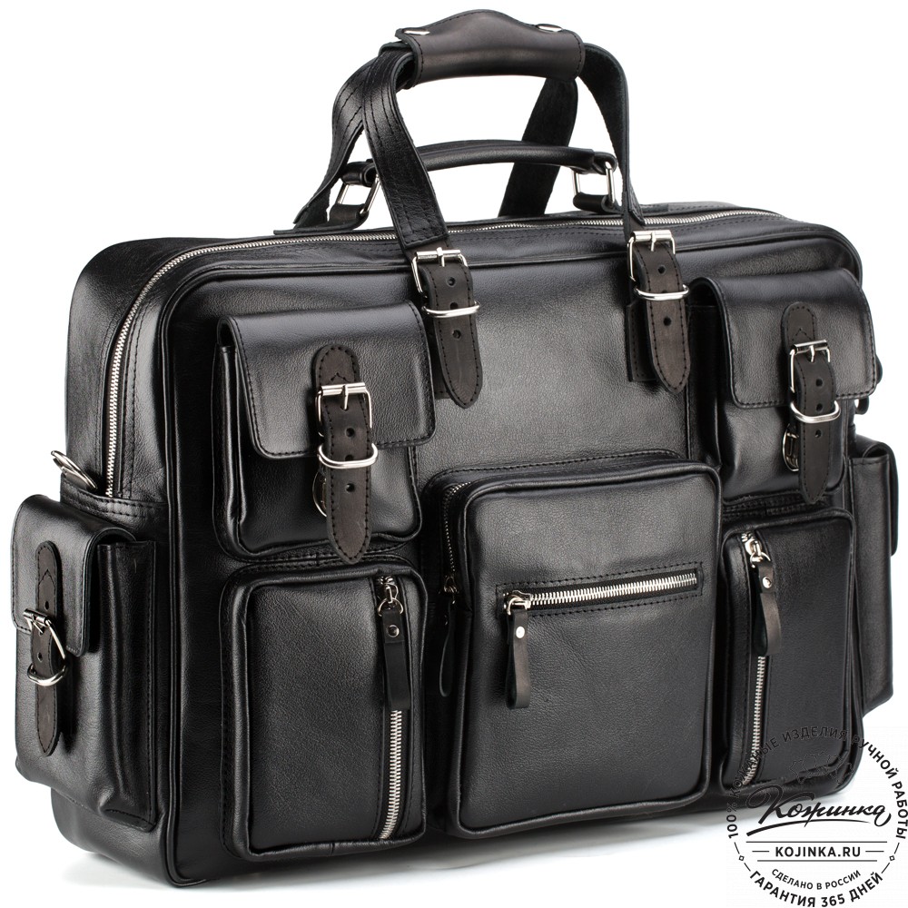 Кожаная деловая сумка для командировок "Ричард" (чёрная) – большая и удобная сумка, впечатляющая своей функциональностью.