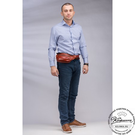 Кожаная нагрудная сумка "Аполлон" (рыжий антик) - самый удобный аксессуар для документов и денег!