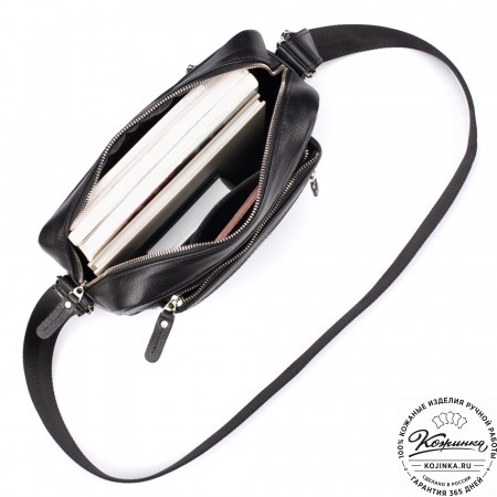 Такую диагональную сумку на одну лямку можно носить как на спине, так и на груди.