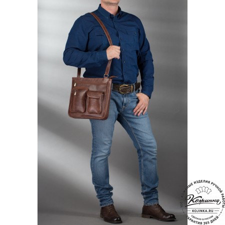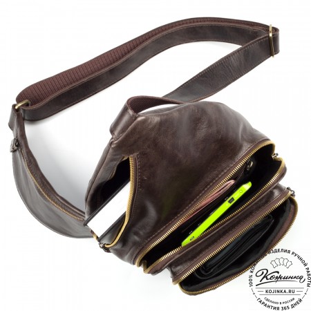 Кожаная нагрудная сумка "Стивен" (тёмно-коричневая) - это уникальная модель 2 в 1, которую можно носить и как нагрудную сумку, и как сумку-планшет. Идеально подойдёт мужчинам, которые любят, чтобы их руки оставались свободными!