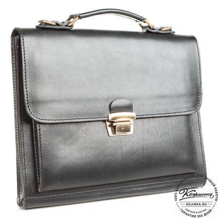 Портфель из 100% натуральной толстой кожи, закрывается на одну пряжку с регулируемой длиной. Сверху конструкция укреплена жёсткой толстой кожей. Внутри два удобных отдела разделённых перегородкой с карманом на молнии. В переднем отделении есть дополнительный малый карман на молнии. На задней стенке имеется один накладной кожаный карман и второй карман на молнии - для быстрого доступа.