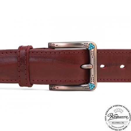 Кожаный ремень B40-1302 (зелёный) - женский джинсовый ремень из фактурной натуральной кожи.