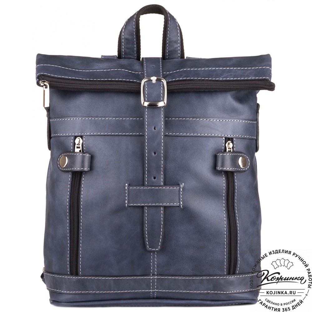 Кожаная сумка-рюкзак «Бора-бора» (темно-синий) – стильный и элегантный рюкзак из мягкой гладкой кожи темно-синего цвета.