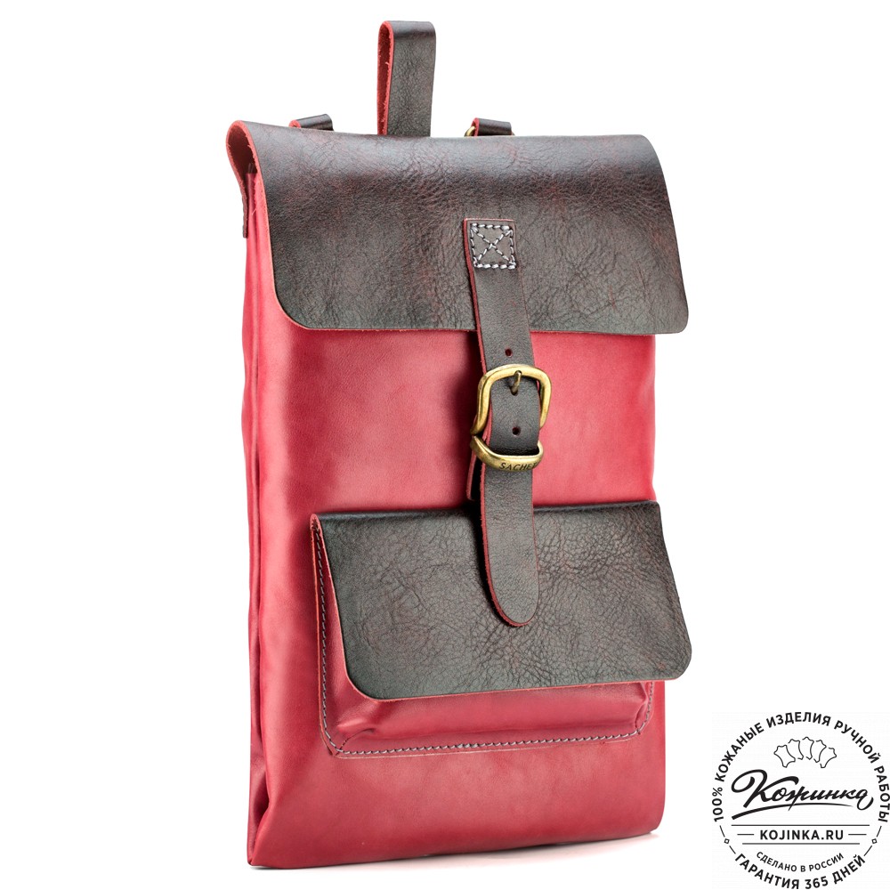 Сочетание кожи красного цвета с гладкой коричневой кожей на клапане, кармане и лямках рюкзака - именно это делает Грэй таким интересным!