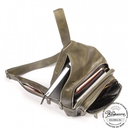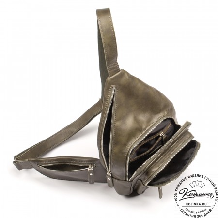 Кожаный рюкзак "Фобос" - стильный диагональный рюкзак на одну плечевую лямку.