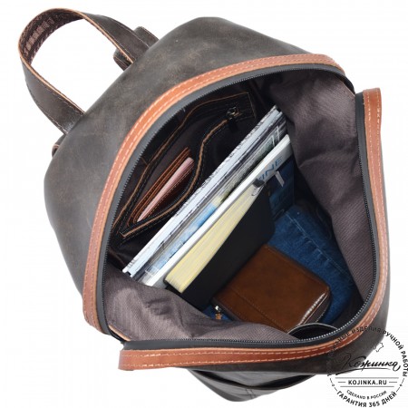 Рюкзак изготовлен из прочной, качественной натуральной кожи и фурнитуры. Внутри подкладка из ткани.