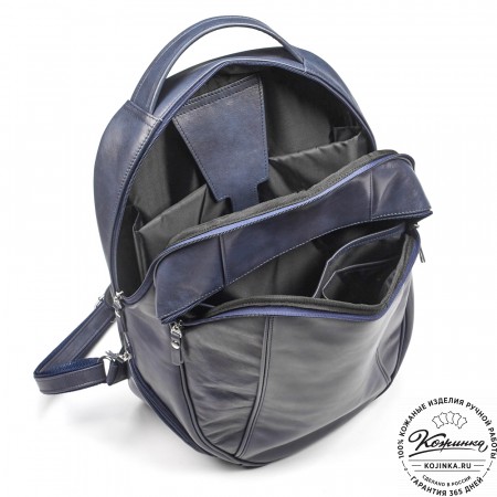 Кожаный рюкзак "Гудвин" (чёрный) - большой и вместительный рюкзак с двумя автономными отделениями. Практичная и удобная модель унисекс с отделением для ноутбука и удобным карманами.