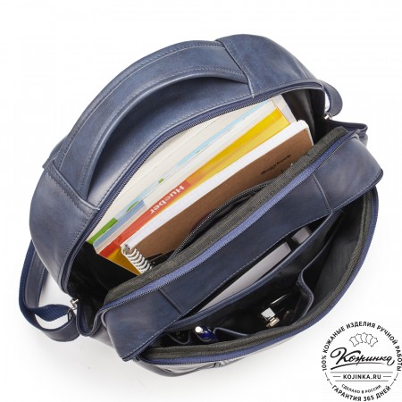У рюкзака широкие мягкие лямки из кожи, которые комфортно ложатся на плечи. Лямки регулируются по длине. Есть кожаная ручка для ношения в руке.
