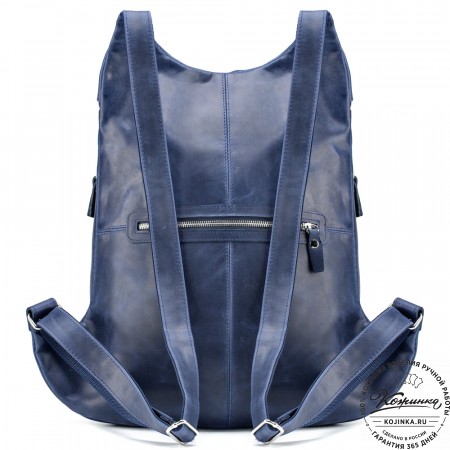 Мужской кожаный рюкзак "Гудвин" (синий воск) - большой и вместительный рюкзак с двумя автономными отделениями. Практичная и удобная модель унисекс с отделением для ноутбука и удобным карманами.