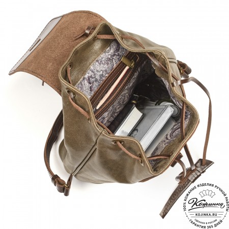 Женский рюкзак ручной работы "Лаура" выполнен из нежной и практичной замши с элементами мягкой натуральной кожи, а подкладка внутреннего отдела для удобства эксплуатации выполнена из прочного полиэстера. Рюкзак "Лаура" представляет собой одно отделение, которое стягивается на шнурок и затем закрывается клапаном, который имеет удобную магнитную кнопку и пряжку. На передней стенке рюкзака расположены 2 объемных накладных кармана на кнопках. Рюкзак "Лаура" имеет ручку, регулируемые по длине лямки из кожи. Внутри рюкзака имеются карманы для хранения особо ценных мелких вещей.