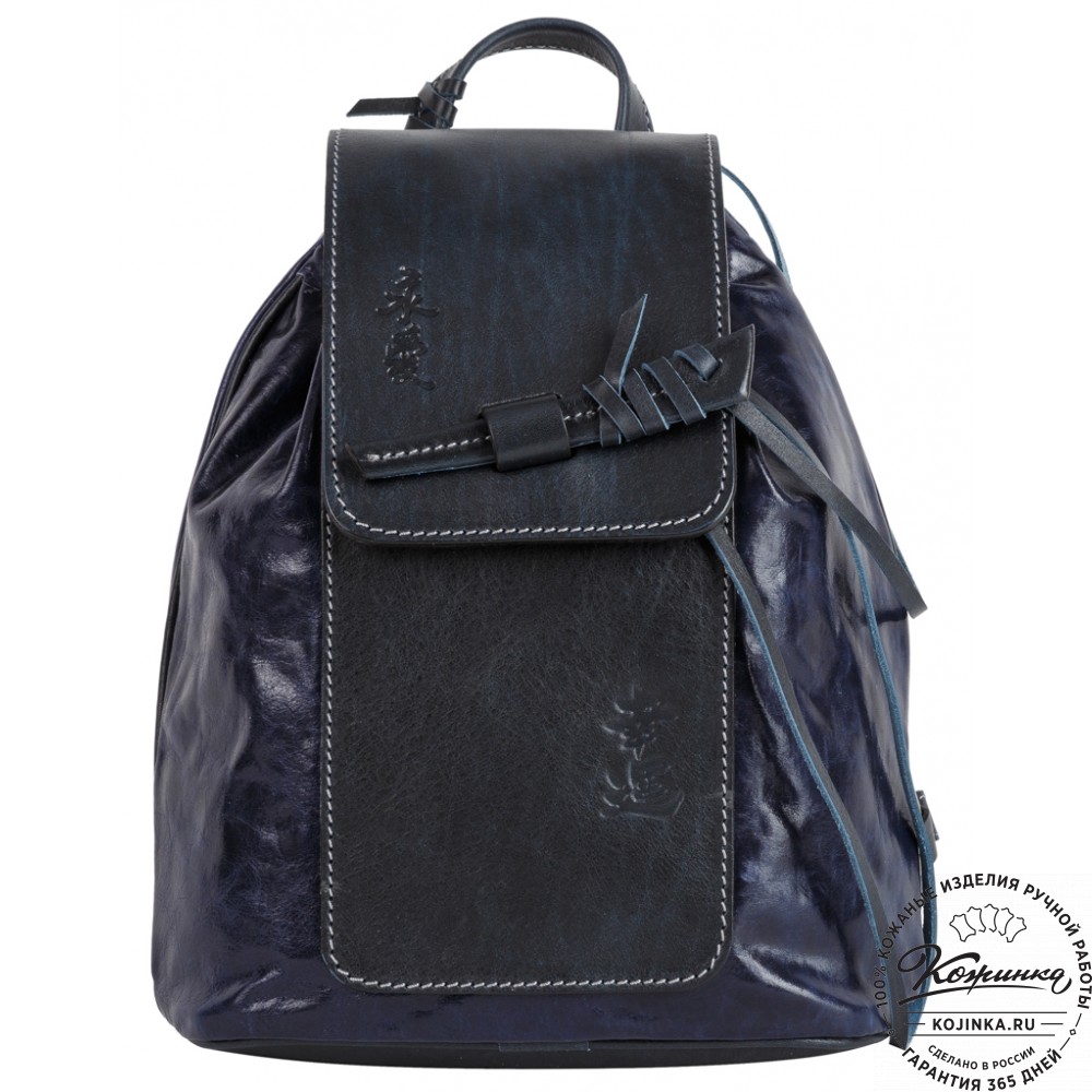 Женский кожаный рюкзак "Гейша" (синий) - восточные мотивы в мельчайших деталях!
