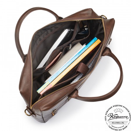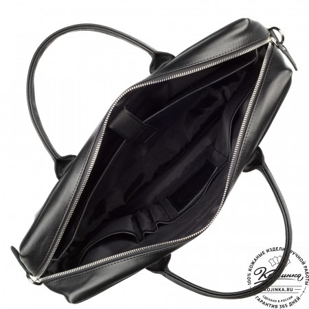 В портфеле два отделения для бумаг, документов или ноутбука с диагональю 13 дюймов.