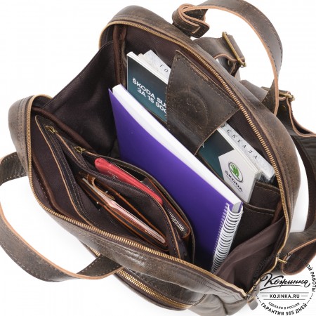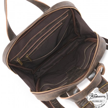 Кожаные лямки регулируются по длине. Удобная длинная ручка позволяет носить рюкзак в руках.