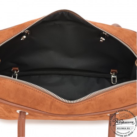 Внутри прочная подкладка из ткани и большой карман на молнии.