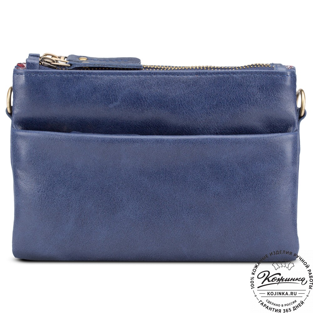 Женская кожаная сумка "Хельга" (синяя) – маленькая аккуратная сумочка с двумя отделениями.