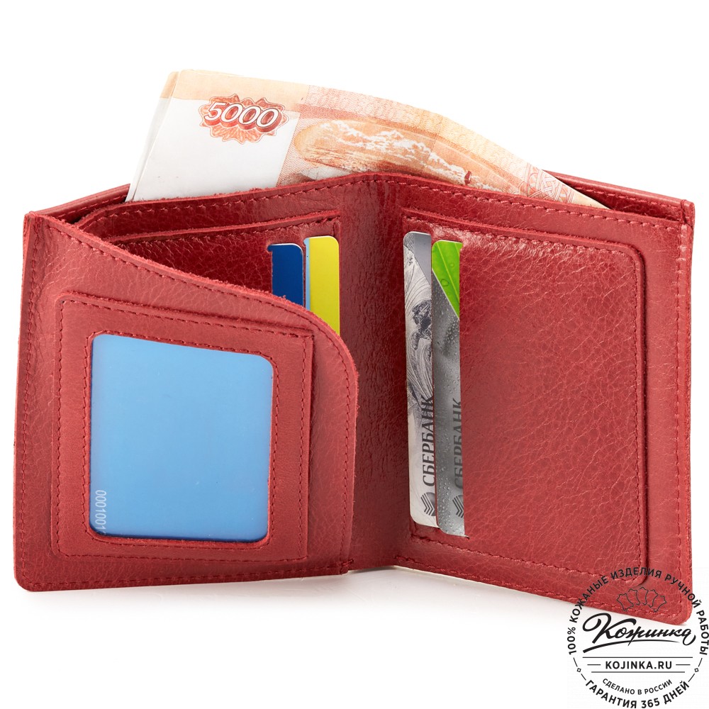 Кожаное портмоне "Россия" (малина) - небольшой удобный бумажника с отделением для купюр и отсеками для пластиковых карт.
