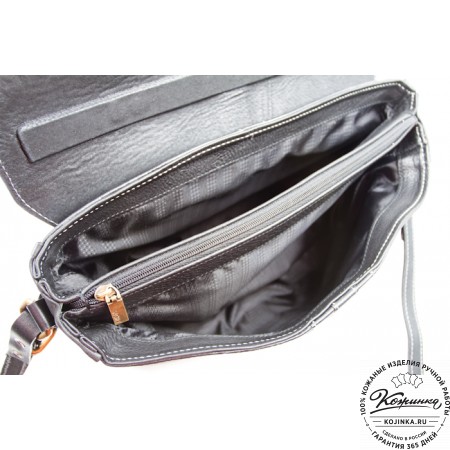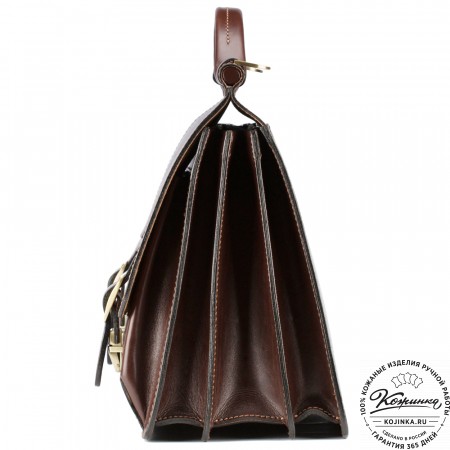 Боковые стенки портфеля сделаны из более мягкой кожи, что позволяет менять форму в зависимости от загрузки портфеля.