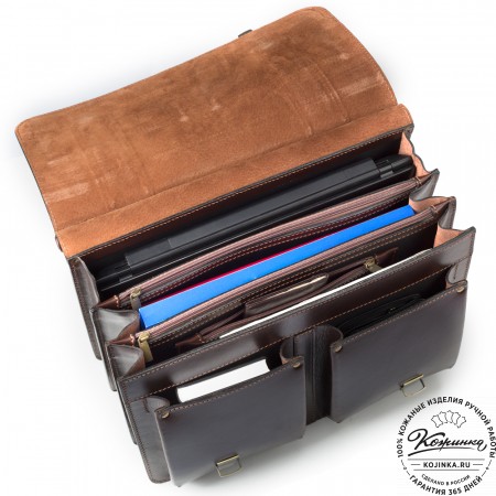 Портфель выполнен из толстой кожи и хорошо держит форму. Идеально подходит для бизнес пользователей.