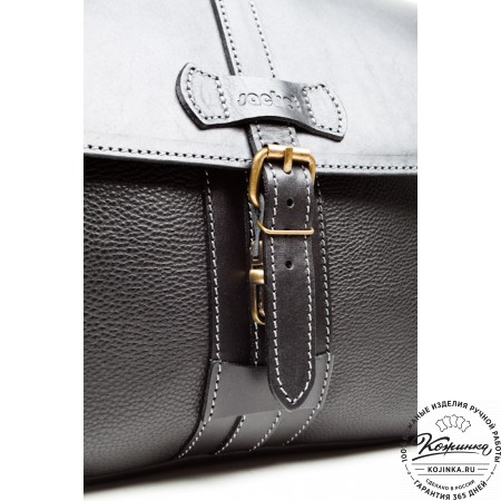 Портфель закрывается клапаном на два кожаных ремня, которые продеваются в петли.