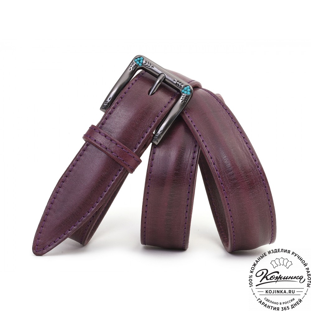 Кожаный ремень "Ирис" (фиолетовый) - женский ремень с красивой пряжкой.