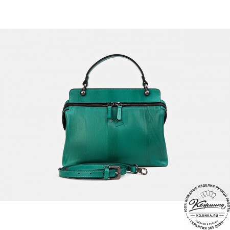 Сумку можно носить в руках за ручку или на длинном ремешке через плечо. Ремешок из кожи, съемный, регулируется по длине.